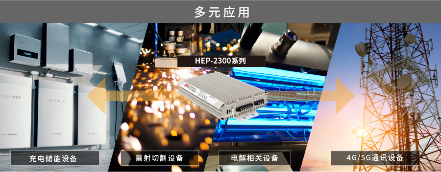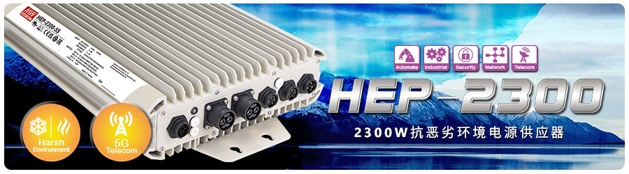HEP系列为针对在恶劣环境专用电源,具备防水防尘IP67功能,可抗震10G、无风扇设计,采用铝挤外壳自然散热方式,适合搭配各种户外工业及通讯设备使用,也提供多种数字通讯功能,可整合到人机接口做系统控制。此外,本次新上市HEP-2300系列也提供高压输出机型,包含115V/230V及380V,可结合新的应用需求,如充电设备、电解设备、雷射切割及UV固化设备等。