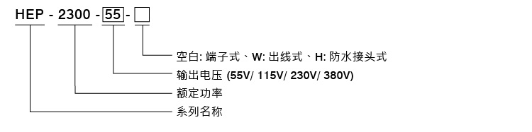 HEP-2300系列包含四种不同输出电压55V/115V/230V及380V,除具备上述特点,适用于高粉尘或室内外仪器设备,输出电压可透过三种方式调整,包含内建可变电阻方式、透过可程序化(PV/PC)功能,亦可透过数字通讯如CANBus/PMBus/MODbus等,对输出电压及电流做调整,方便结合人机接口做系统整合与控制使用。