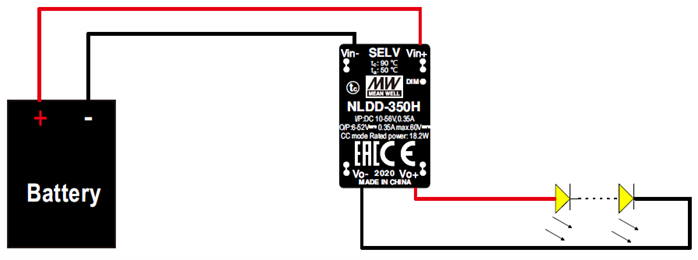 应用简介:便携式照明灯具由电池、DC/DC电源与LED灯组成(如图2),明纬推出的NLDD-350H是采用降压型的芯片进行设计,输入DC范围10V~59V,可自由搭配48V电池使用。