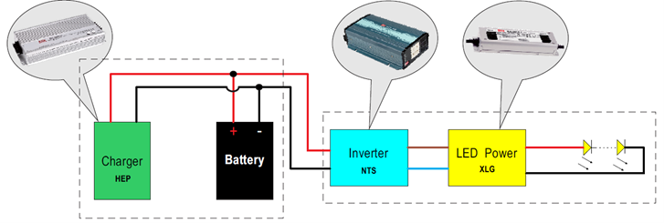 ■新一代明纬绿色环保LED移动照明系统需配备AC电源输出,以满足紧急照明与其它电气设备供电需求,明纬新推出的NTS-250~1200W离网型纯正弦波DC/AC逆变器可满足不同应用场合及内置安装应用需求。