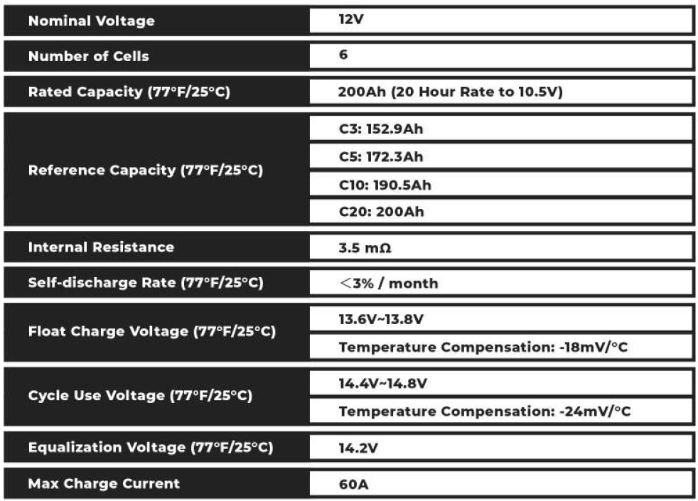 此案例应用在12V/200Ah铅酸电池的充电,铅酸电池的规格如下。