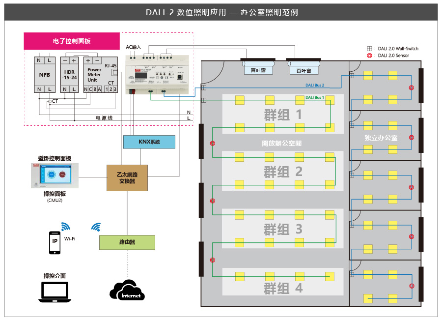 2组独立DALI总线,可接Control Gear及Control Device搭配使用
