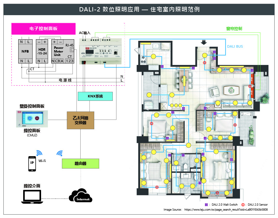 随着5G及智能居家产品的发展趋势,数字照明系统及楼宇自动化的应用,越来越受到关注。如何有效整合大楼或智能居家所有的照明系统,同时结合楼宇自动化的控制,将是未来发展的趋势。跨入(B.A)楼宇自动化系统,明纬除了提供KNX楼宇自动化系统相关产品之外,我们正式推出符合DALI-2规范,数字控制的照明系统DLC-02控制器;以及可有效整合进KNX楼宇自动化系统(KNX转DALI Gateway)的产品— DLC-02-KN,用户可依场域规模,选择合适的产品做搭配。